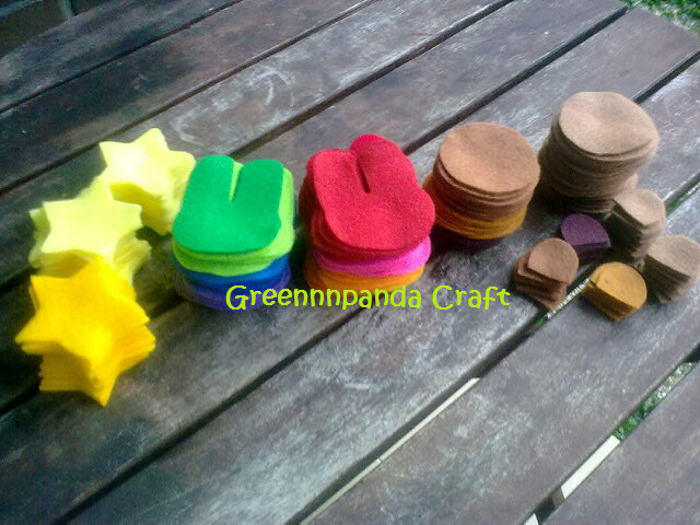 I received an order from Nurul Husna Sofia who wanted various shapes of felt cut-outs. She was interested after looking at a pic I posted for fun, hehe.. (see the pic below) I snapped the pic before I started to sew them, coz I thought they all looked nice & kinda cute, haha.. XP
